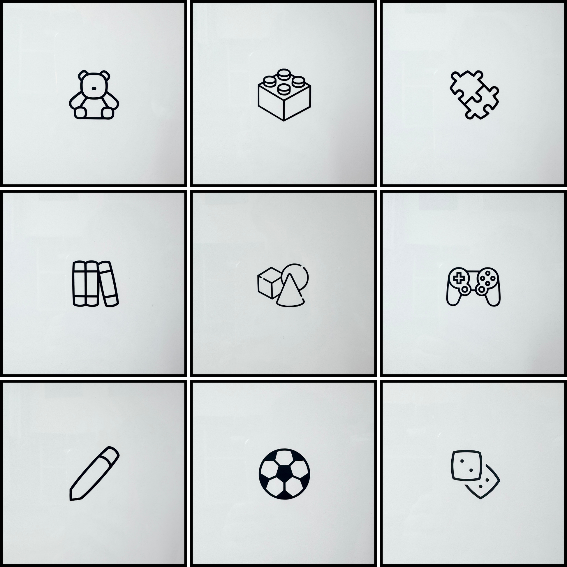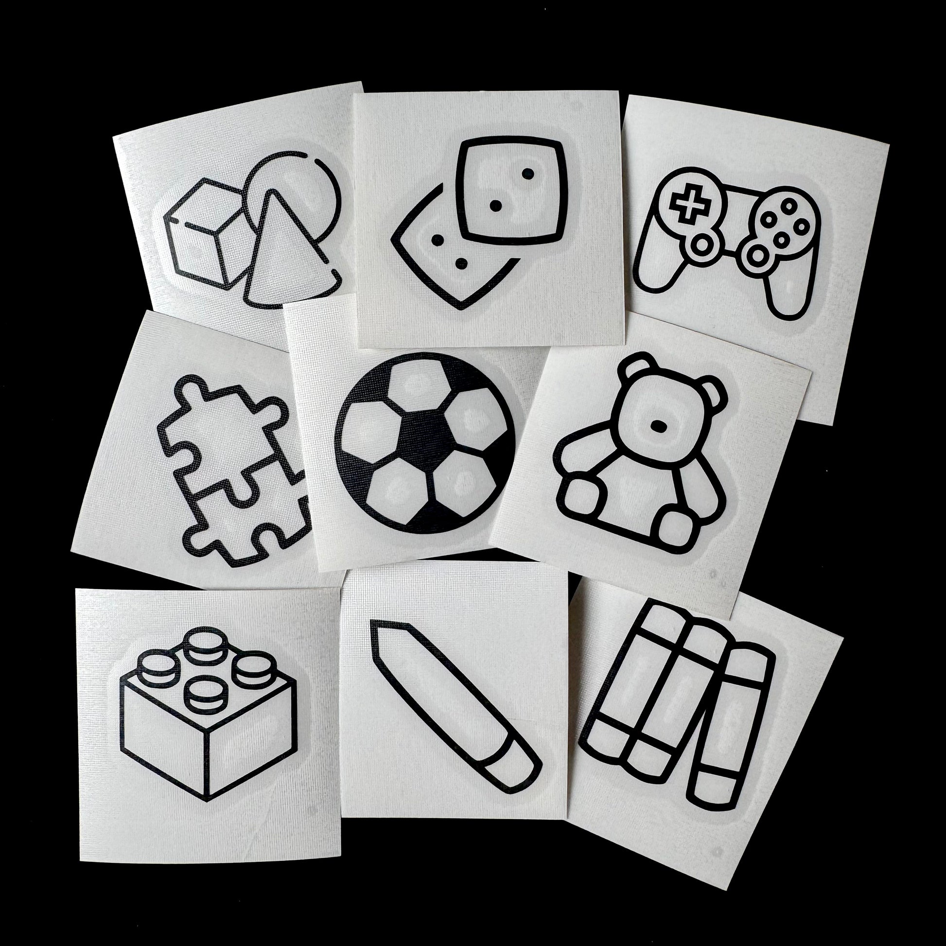 -9 liebevoll gestaltete Symbole zur einfachen Organisation im Familienalltag – ideal für Aufbewahrungsboxen oder Spielzeugkisten.