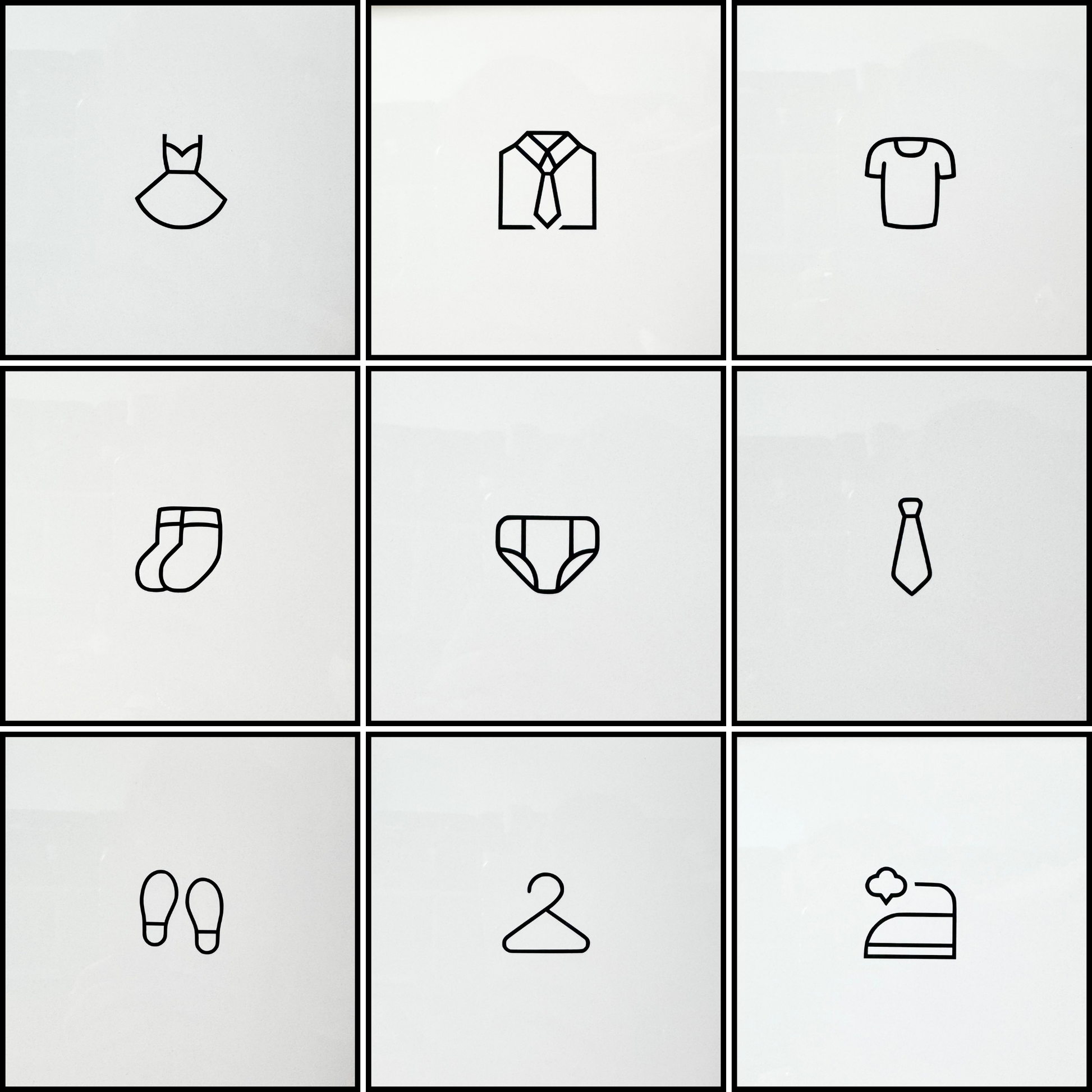 -9 universelle Symbole rund um Kleidung, perfekt zur Kennzeichnung von Boxen, Fächern oder Aufbewahrungssystemen
